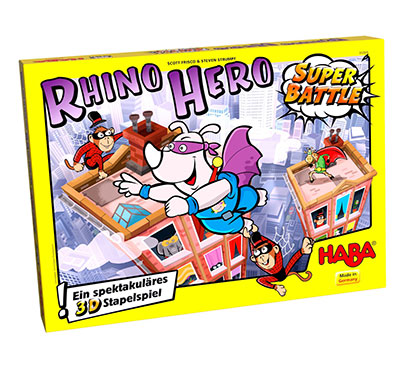 Rhino Hero und seine Superhelden-Freunde erleben jede Menge Abenteuer auf dem Wolkenkratzer aus Karten. Doch Vorsicht: Dieser wird immer höher und wackeliger, je mehr Karten als Wände und Böden aufgebaut werden. Wer geschickt würfelt, zieht den eigenen Superhelden weit nach oben und verteidigt seinen Platz in den Würfel-Battles gegen andere Spieler … wären da nicht die Spider-Monkeys, die den Wolkenkratzer zum Schwanken bringen.