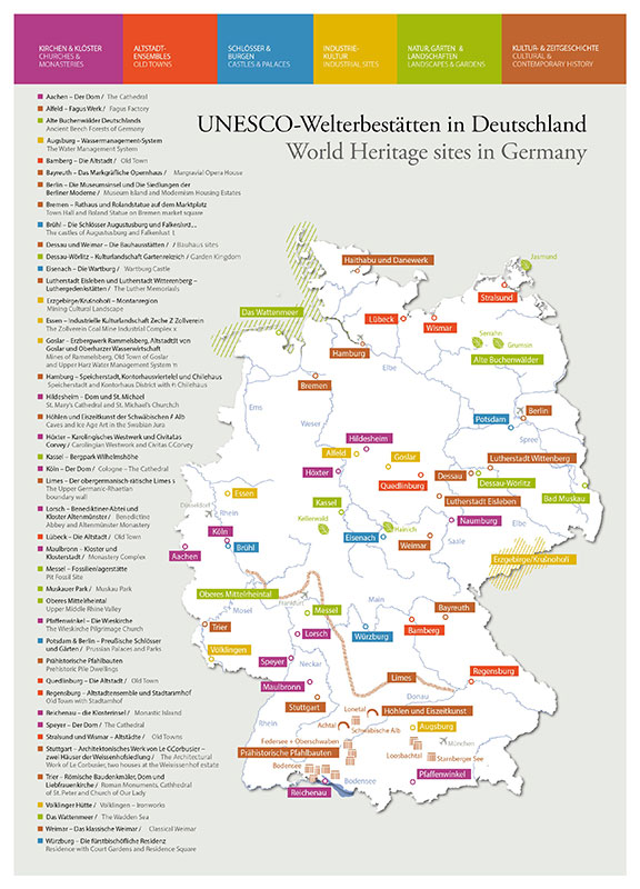 Zur Orientierung zeigt die beiliegende Übersichtskarte die Standorte aller Welterbestätten in Deutschland. Vielleicht auch eine schöne Anregung für den nächsten Wochenendausflug ...