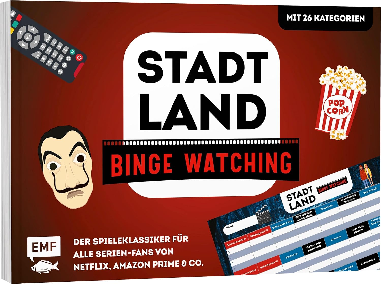 Egal wo du bist – Mit dieser spannenden Stadt, Land, Bingewatching-Edition bringst du immer eine große Portion Spaß mit in die Runde! In 26 Kategorien könnt ihr euer Serien-Wissen testen und eure Kreativität unter Beweis stellen. Der Spieleblock überzeugt mit coolem Design und spannenden Themen – perfekt für alle Serienliebhaber. Von einfachen Fragen bis hin zu kniffligen Kategorien – hier ist alles und für jeden etwas dabei.