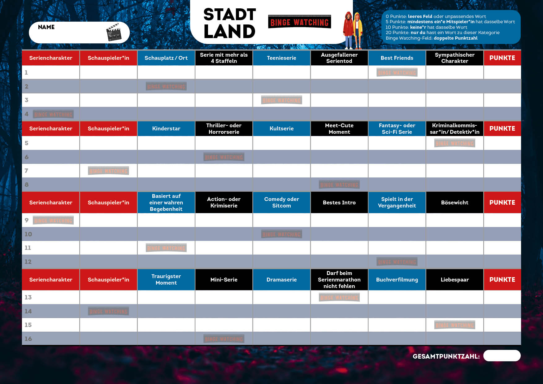 Stadt, Land, Binge Watching – Der Spieleklassiker für alle Serien-Fans